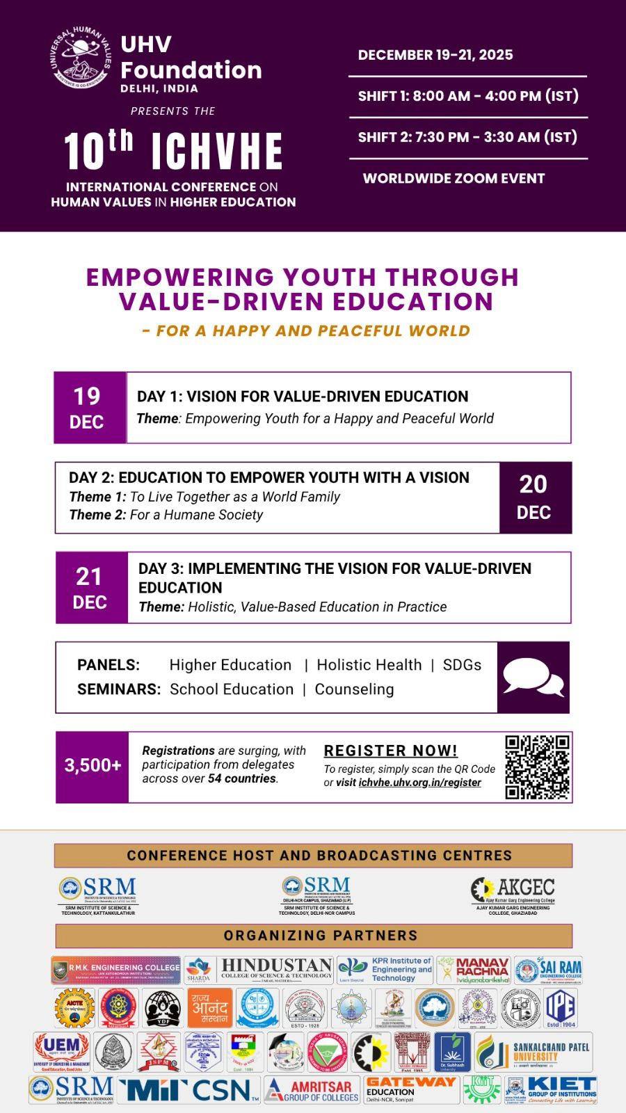 TKM College of Engineering Kollam is one of the organizing partners of the 10th International Conference on Human Values in Higher Education to be held from 19th to 21st December 2025.