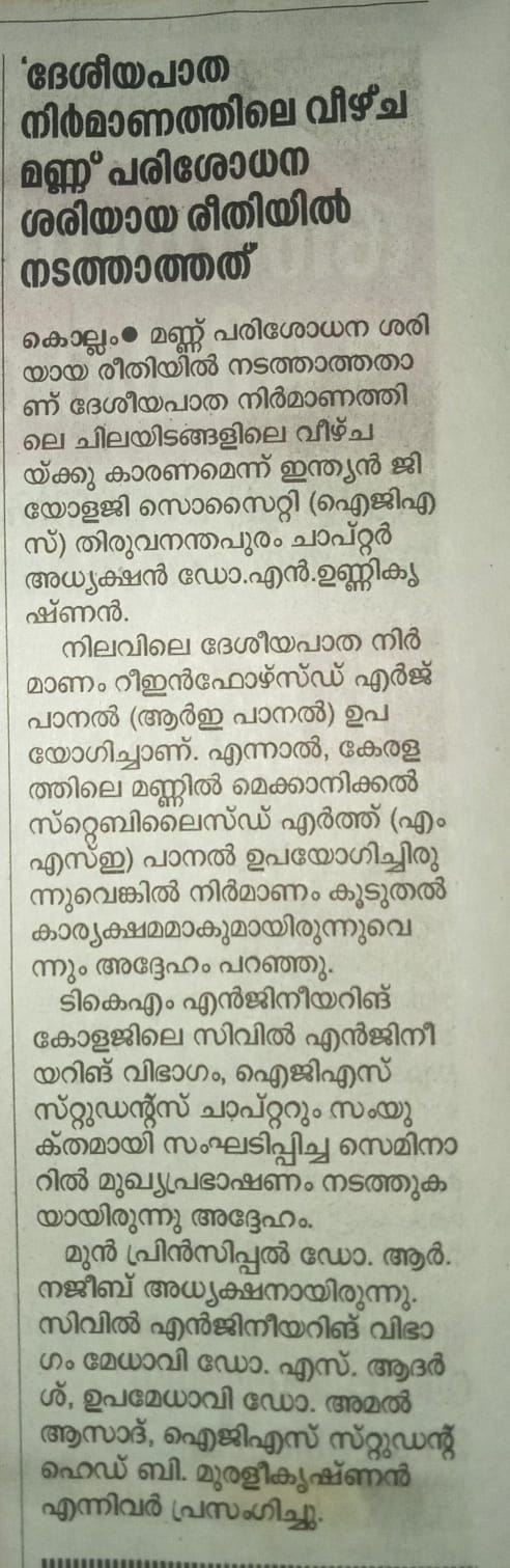 The Department of Civil Engineering at TKM College of Engineering cordially invites you to an Expert Lecture organized by the IGS Student Chapter – TKMCE.