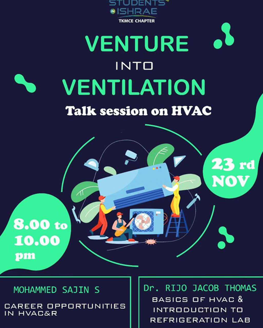 Welcome to the ISHRAE TKMCE Student Chapter — a dynamic platform that brings together passionate engineering students to explore the evolving world of Heating, Ventilation, Air Conditioning and Refrigeration (HVAC&R).